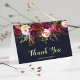 COLOR DE FONDO CAMBIABLE. Tarjeta de agradecimiento de boda de estilo bohemio que presenta ilustración de acuarela de peonías y rosas burgundy, marsala, rojas y rosadas con acento de plumas en fondo azul marino. Esto es perfecto para eventos de otoño/invierno, florales y de estilo bohemio. También están disponibles artículos coincidentes. * Por favor haga clic en el botón "Personalizar" para cambiar el color, la fuente y el tamaño.
