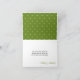 El patrón de trébol y corazones entrecruzados en verde y blanco hace una bonita tarjeta de agradecimiento de boda de marzo con tema irlandés o del Día de San Patricio. Se puede personalizar con los nombres de la novia y el novio en la parte frontal de la tarjeta. Un bonito patrón de corazón de lunares verdes y blancos en la parte superior interior de la tarjeta. La obra de arte en esta nota de agradecimiento de boda de trébol personalizada es © Chrissy H. Studios, LLC. Todos los derechos reservados.