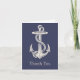 Tarjeta de agradecimiento de boda temática náutica en azul y marfil, realizada en azul con arte vintage de un ancla de barco de color marfil con cuerda en la parte frontal. Personalice el texto dentro y fuera según sus necesidades. Están disponibles productos de boda a juego.
