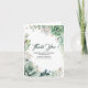 Tarjetas de agradecimiento de boda elegantes con hojas y flores verdes y doradas