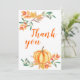 Agradece a tus invitados por venir a tu ocasión de otoño, ya sea una fiesta de bebé, una despedida de soltera, una boda o un cumpleaños. Esta tarjeta presenta una calabaza en acuarela con hojas de colores otoñales. Agrega tu mensaje en el reverso o déjalo en blanco y escribe un mensaje a mano a tus invitados.