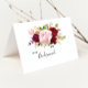 Esta tarjeta de agradecimiento de dama de honor roja tropical y romántica es perfecta para una boda de destino. El diseño artístico de bordo marsala presenta rosas de acuarela, verde, rosa, burdeos y rubor mezcladas con follaje dispuestas ordenadamente en un ramo de flores radiante y elegante.