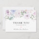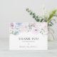 ¡Agradezca a sus invitados por celebrar a la futura novia! Esta tarjeta de agradecimiento de ducha nupcial floral púrpura violeta presenta una cascada floral de lavanda en acuarela y follaje. Personalice con su información o haga clic en "Haga clic para personalizar más" para editar estilos de fuente, tamaño y colores.