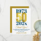 Una tarjeta de agradecimiento de fiesta de bodas de oro moderna y llamativa. Esta tarjeta especial de bodas de oro consiste en el año de matrimonio y la fecha actual en tipografía azul, con el 50 resaltado en una fuente con efecto dorado. Agrega un mensaje para un agradecimiento personalizado por regalo de aniversario de bodas de oro. Parte trasera de color dorado.
