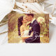 La sencilla y elegante plantilla de tarjeta de agradecimiento de boda presenta una foto horizontal / apaisada con una superposición de guión formal "Gracias" en blanco, y un mensaje personalizado de la novia y el novio en el interior que se puede personalizar.