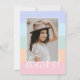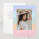 Esta sencilla y elegante tarjeta de agradecimiento de foto presenta un diseño de rayas de bloque de color en púrpura pervinca, azul aqua, verde menta, melocotón coral y rosa, junto con un texto elegante que dice, "¡Gracias!" Las plantillas de texto están incluidas en la parte posterior para personalizar. ¡Perfecto para enviar después de una fiesta de cumpleaños para una niña preadolescente o adolescente! Para solicitudes de diseño personalizado o producto, por favor contacte conmigo (Tracey) en orabellaprints@outlook.com.