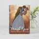 Tarjeta plana de agradecimiento de boda con foto simple con superposición de escritura a mano blanca en un diseño vertical de esquinas redondeadas. Envíe su mensaje de agradecimiento de boda como recién casados a sus amigos y familiares utilizando esta elegante, memorable y simple tarjeta plana de agradecimiento de boda con la foto con las palabras "gracias" escritas en una superposición de texto de tipografía de escritura a mano blanca. Reemplace fácilmente la foto de muestra con su propia foto de boda. Agregue su mensaje personal de agradecimiento en la parte posterior o déjelo en blanco y escriba su mensaje a mano en persona. Elija su tarjeta entre seis formas y varios acabados de papel en el menú de opciones a la derecha. Otros colores disponibles. Diseñado por la tienda nadil2 e impreso por Zazzle.