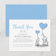 Muestre su gratitud por el amor y el apoyo recibido durante su momento de dolor con una elegante y emotiva tarjeta de agradecimiento de funeral personalizada. Con dos elefantes juguetones que simbolizan a un padre y un hijo, este diseño es perfecto para la pérdida de un niño y capta la esencia del amor eterno. Adornada con alas de ángel celestiales y un globo con forma de corazón, el diseño de la tarjeta consolará a sus seres queridos y expresará su agradecimiento.