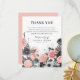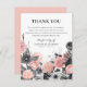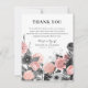 Tarjeta de agradecimiento de funeral personalizada para enviar a amigos y familiares que te han mostrado amor y amabilidad durante tu momento de dolor. Con un clásico fondo blanco y una exhibición de flores y follaje de acuarela rosa y negro. Todo el texto es fácil de personalizar utilizando la plantilla proporcionada.