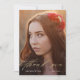 Esta tarjeta de agradecimiento de graduación presenta caligrafía moderna y una foto completa del nuevo graduado. En la parte delantera, una superposición dorada incluye las palabras "gracias" escritas en hermosas letras de script; el nombre del graduado y el año de graduación están escritos en blanco debajo. El diseño de tipografía superpone una foto vertical completa del graduado. En la parte trasera, puede escribir un mensaje personalizado para los destinatarios, o eliminar el texto de la plantilla para crear un área en blanco para una nota escrita a mano.