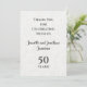 Esta es una tarjeta de agradecimiento por el 50º aniversario de boda, floral blanca con relieve falso a dos caras, con el diseño en la parte frontal y el texto de agradecimiento en la parte posterior. Es una forma económica de comprar una gran cantidad de tarjetas de agradecimiento personalizadas. Puede modificar fácilmente el texto en la parte frontal o posterior. Todos los derechos reservados © 2022 Alan & Marcia Socolik.