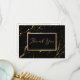 Coordina con la plantilla de tarjeta de visita del Diseñador de mármol negro y dorado a las 12.00 horas. Un fondo de mármol dorado negro y falso añade una estética de moda a estas tarjetas de agradecimiento personalizadas. © 1201AM CREATIVE