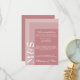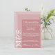 Sencilla y moderna tarjeta de boda de escritura de moda para alojamiento, novias que están adornando sus ceremonias en un estilo moderno y polvoriento color rosa. La suite boda de moda tiene un tipo de letra blanco moderno con las iniciales monograma en un lado.