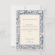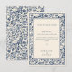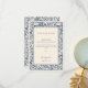Con un hermoso borde floral vintage en azul profundo sobre un suave fondo crema, esta tarjeta captura el encanto intemporal de su día especial. El sofisticado diseño ofrece una manera clásica y reflexiva de agradecerte por su presencia, regalos y apoyo en tu día de bodas. Perfecto para las parejas que buscan añadir un toque de elegancia y tradición a su papelería boda, esta tarjeta es un gran placer para sus huéspedes.