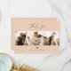 Elegante caligrafía 3 foto, boda de agradecimiento carta en color durmiente. Características, 3 espacios de fotos cuadrados en la parte delantera, caligrafía gráfica "Gracias", acento cardíaco, líneas de texto de plantilla para sus nombres y mensaje personalizado.