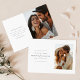 Exprese su gratitud con nuestra tarjeta de agradecimiento de Boda de fotos simple elegante con nota. Esta elegante tarjeta incluye dos fotos románticas de una pareja y un diseño escrito a mano en blanco y negro, perfecto para un boda casual de moda. Su estilo sencillo y minimalista transmite un sentido agradecimiento por la sofisticación.