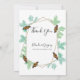 Este diseño presenta un elegante diseño monarca con mariposa y hojas. El marco geométrico dorado está rodeado de hojas de acuarela vintage. Las mariposas naranjas y negras se sienten atraídas por la vegetación. Patrón de hojas de Damasco con tonos de color verde. El reverso muestra un par de mariposas descansando en la hoja de acuarela. La combinación de colores crea un estilo sofisticado, moderno y de moda. Elegante diseño de tarjetas de agradecimiento de bodas con elementos modernos. La sencilla configuración de la tipografía le da un estilo distinto. También hay disponibles invitaciones de boda coincidentes y otros artículos de papelería.