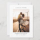 Exprese su gratitud con nuestra tarjeta Elegant Boho Photo Boda. Con una impresionante foto de la pareja frente a un romántico atardecer, esta carta combina una estética rústica con una moda moderna. Perfecto para bodas de destino en blanco y negro, esta tarjeta de doble cara es ideal para usar como mesa boda, tarjetas de agradecimiento o tarjetas de agradecimiento de ducha de boda. El diseño, sencillo pero elegante, lo convierte en un lugar atemporal para los clientes. Resalte su aprecio con esta elegante y sentida carta de agradecimiento, perfecta para cualquier celebración de estilo boho.