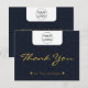 Tarjeta de agradecimiento personalizado para pequeñas empresas, vendedores (etsy, eBay, Amazon y otros) y artesanos. Elegante y moderno con colores azul marino oscuro, textos dorados y acento blanco. En el fondo se utiliza un modelo hexagonal moderno. El diseño también utiliza el tipo de letra del guión caligráfico y el tipo de letra estricto. Puede personalizar fácilmente esta tarjeta de agradecimiento agregando su logotipo, texto, nombre de la empresa, dirección y sitio web y cualquier otra información que desee.