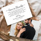 Disfrute de la belleza de su día especial con nuestra tarjeta de agradecimiento Boda de imágenes elegante. Con una tipografía de escritura refinada y un espacio para una foto boda favorita, este diseño atemporal combina el romance clásico con el encanto personalizado. El diseño minimalista resalta tu foto mientras que el guión elegante añade un toque elevado y sofisticado. Perfecto para las parejas que desean enviar una sincera gratitud con estilo, esta tarjeta crea un conservador duradero que sus huéspedes apreciarán. Personalizar con sus nombres, fecha de boda y un mensaje personal.