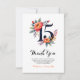 Expresa tu gratitud con esta tarjeta de agradecimiento de cumpleaños Quinceañera de 15 años con flores de acuarela elegantes. Con un número "15" pintado hermosamente con delicadas flores de acuarela amarillas y naranjas, este diseño agrega un toque sofisticado a tu celebración. La tarjeta es totalmente personalizable, lo que te permite agregar tu propio mensaje sincero para agradecer a los invitados, familiares y amigos por su amor y apoyo.