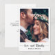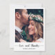 Esta elegante tarjeta postal de agradecimiento a tu boda tiene una foto en la parte delantera con el texto de Amor y Gracias y los nombres de la pareja.