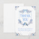 Es una tarjeta de agradecimiento de un Escudo floral azul. Los elementos coincidentes están disponibles.