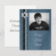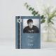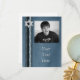 Tarjeta de foto con fondo azul con textura, franjas laterales azules y acento de Estrella de David plateada. Personalice para invitaciones de Bar Mitzvah, tarjetas de agradecimiento o cualquier ocasión.