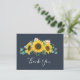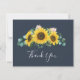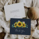 Esta carta rústica de agradecimiento de la marina de eucalipto de girasol es perfecta para una boda campestre. El diseño floral bohemio incluye girasoles amarillos, flores rosas y un eucalipto verde cazador en la acuarela con un elegante y moderno toque boho. Personalice la parte posterior de la tarjeta con sus nombres y un mensaje de agradecimiento. Como alternativa, deje en blanco la sección de plantilla de mensajes de agradecimiento para escribir a mano una nota personalizada en cada tarjeta después de su llegada. Estas tarjetas se pueden usar para un boda, una ducha de novia o cualquier evento especial.