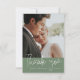 Agrega tu foto de boda a esta elegante carta de agradecimiento de boda. Edite fácilmente el mensaje en la parte de atrás y cambie los nombres de la novia y del novio y los detalles del boda. Tarjeta De Agradecimiento Del Boda Verde Eucalyptus.