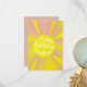 Trae alegría y calidez al día especial de alguien con esta hermosa tarjeta de felicitación de cumpleaños con un sol pintado a mano en vivos tonos amarillo y rosa. En el centro del sol, el alegre mensaje "Cumpleaños feliz, Sunshine" se escribe en una fuente retro groovy, agregando una vibración divertida y edificante. Perfecto para amigos, familia o cualquier persona que traiga sol a su vida. ¡Este diseño brillante y feliz les hará sonreír!