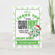 Tarjeta de felicitaciones navideñas de negocios personalizable, diseñada por The Arty Apples, con un diseño rojo y verde festivo con una menta a la kawaii usando un sombrero de Santa. Incluye el juego de palabras divertido "Gracias por tu participación/aliento/compromiso/inversor-menta - ¡aquí hay un poco de menta de gozo!" más espacio para tu nombre de negocio o mensaje personal. Perfecto para que las empresas envíen a personal, clientes y socios como parte de su apreciación de vacaciones y regalos de marketing.
