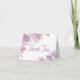 Alegrar el día de alguien con flores. Esta dulce tarjeta de nota floral presenta flores de acuarela pintadas a mano en tonos complementarios de púrpura y lavanda que resaltan un saludo de agradecimiento impreso en una fuente de escritura púrpura con un fondo blanco cremoso contrastante. El interior de la tarjeta está en blanco para su mensaje personal.
