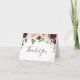 Tarjeta de agradecimiento de boda con flores y follaje de acuarela elegante, borde. El borde floral presenta flores de moda y follaje de jardín en tonos de blanco, verde, rosa sonrosado y rojo burgundy. Un "Gracias" bonito, en color burgundy coordinado, escrito a mano en la parte delantera. Diseñado para coincidir con nuestra Colección Floral Botánica Burgundy Blush.