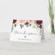 Tarjeta de agradecimiento de boda con flores y follaje de acuarela elegante, borde de flores. El borde floral presenta flores de moda y follaje de jardín en tonos de blanco, verde, rosa sonrosado y rojo burgundy. Un "Gracias" bonito, en escritura moderna con acento de corazón y línea de texto de plantilla para sus nombres. Diseñado para coincidir con nuestra Colección Floral Botánica Burgundy Blush.