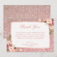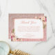 Tarjeta de agradecimiento floral elegante rosa con marco dorado.