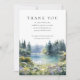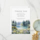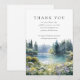 Una elegante tarjeta de agradecimiento funeral conmemorativo que presenta una escena de flores silvestres forestales de acuarela junto a un lago. Diseñada por Thisisnotme©