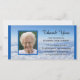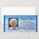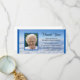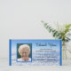 Esta impresionante tarjeta fotográfica muestra una foto de tu ser querido como punto focal con un borde azul que se repite a lo largo de los bordes derecho e izquierdo de la tarjeta de foto. Las palabras "Gracias" aparecen en el cielo con el nombre de su familia justo debajo. Hermosas palabras para agradecerte por tu simpatía aparecen en las nubes de abajo. Solidaridad con los derechos de autor gracias