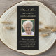 Esta hermosa tarjeta de fotos de simpatía conmemorativa de gracias incluye una foto de tu ser querido como punto focal en un marco dorado sobre un fondo negro. Las palabras "Gracias" y el nombre de su familia aparecen encima de la foto y un agradable sentimiento aparece debajo. Esta es sólo una preciosa tarjeta de foto por decir gracias por su simpatía. Palabras y diseño protegidos por la solidaridad de los derechos de autor gracias