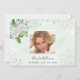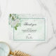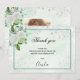 Una elegante tarjeta de agradecimiento con foto. Rodamientos de brotes de color verde acuático como fondo, decorados con polvo falso purpurina plateado, flores blancas y vegetación. Personalice y agregue su nota de agradecimiento. Texto negro.