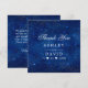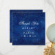 Galaxia acuarela Estrellas Cósmicas Tarjeta de agradecimiento. Este diseño presenta luces de estrellas brillantes en el espacio contra un cielo estrellado nebuloso de un universo celestial azul marino. Personalice este diseño personalizado con su propio texto y detalles de eventos.