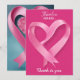 ilustracion donde la conciencia del cáncer rosado se transforma grácilmente en una nota de agradecimiento en forma de corazón. Esta transformación debería servir como tributo a los cuidadores, partidarios y defensores, expresando gratitud por su dedicación inquebrantable y amor en la batalla contra el cáncer. Tamaño de tarjeta de agradecimiento plano: 5" x 7" Por todas las formas en que dice gracias, tenemos una tarjeta de agradecimiento personalizado sólo para usted. Dimensiones: 5" L x 7" H (retrato); 7" L x 5" H (paisaje) Impresión de alta calidad, a color completo y a todo color en ambos lados Añadir fotos personales y texto sin recarga adicional Tipo de papel: Matte A classic, todo alrededor del papel con un toque natural y un acabado mate sin revestir; nuestro mate estándar representa la prueba del tiempo. Los colores impresos son más suaves y tenues, dándole un toque elegante y sutil a tus diseños. Espesor de 17,5 pt / peso de 120 lb / 324 GSM El acabado mate claro blanco sin revestir con una textura de concha de huevo El papel es fácil de escribir y no se mancha Fabricado e impreso en los Estados Unidos