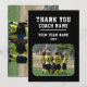 Gracias tarjeta de entrenador con foto de nombre de equipo. Personalice con su nombre de entrenador, nombre del equipo, foto del equipo y año. Puede cambiar cualquier texto de la tarjeta o borrarlo. ¡Un gran regalo y un bigote para un entrenador deportivo!