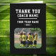 Gracias tarjeta de entrenador con foto de nombre de equipo. Personalice con su nombre de entrenador, nombre del equipo, foto del equipo y año. Puede cambiar cualquier texto de la tarjeta o borrarlo. ¡Un gran regalo y un bigote para un entrenador deportivo! Obtén al equipo que firme las áreas no diseñadas para un gran mantenimiento.