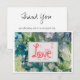 3.5" x 5" Gracias tarjeta plana, acabado semi-brillante, esquinas cuadradas, más sobres. FRENTE: Motivo de amor contra fondo de tinta de alcohol verde, azul y morado. VUELTA: Gracias por celebrar nuestro día especial con nosotros. Espacio para escribir mensajes a mano y agregar firma. O personalizar la impresión con su propio mensaje.