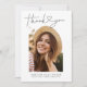 Sencilla y moderna carta de agradecimiento a la graduación para enviar a aquellos que lo felicitaron, asistieron a su fiesta de graduación, les dieron regalos, etc. Dice "gracias" en la parte superior en un alfabeto moderno con un bonito corazón en el medio. Puede agregar una segunda imagen en la parte posterior y el mensaje es editable.
