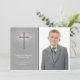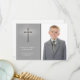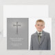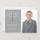 Una elegante tarjeta de fotos cristiana en gris con efecto cruzado y brillante. Se muestra como una tarjeta de agradecimiento de la Comunión, pero puede ser personalizada para cualquier evento religioso incluyendo bautismos, bautizos, primeras comuniones sagradas o confirmaciones.