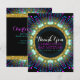 Bat Mitzvah inspirado en el arte de la luz negra Gracias diseño de tarjetas coloridos colores vivos de neón. Un resplandor en el diseño de inspiración fiesta oscuro mezclado con un hermoso patrón geométrico luminoso hecho de puntos. Con elegantes bordes dorados - esta invitación a Bat Mitzvah tiene espacio en la parte posterior con el diseño para montones de texto personalizado - Hecho con amor Verde por Webgrrl.art æ(COCHING SET) Este diseño de Gracias es parte de una suite coincidente (set)
