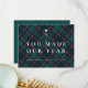 Envíe sus más sentidas gracias esta temporada navideña con nuestra elegante tarjeta de Navidades de doble cara. Con un atrevido fondo escocés en verde y rojo con una tipografía crujiente en blanco, el frente dice "Hiciste nuestro año" con espacio para tu logo o monograma. La parte posterior incluye un mensaje de vacaciones de personalizable en el que puede expresar su gratitud a clientes, colegas o socios mientras muestra sus detalles y logotipo de negocios. Una elección sofisticada para empresas, pequeñas empresas o profesionales que buscan difundir alegría y apreciación durante la temporada festiva. Añada la redacción de su personalizado a este diseño utilizando los cuadros "Editar esta plantilla de diseño" en el lado derecho del elemento o haga clic en el botón azul "Personalizar" para organizar el texto, cambiar los tipos de letra y los colores y también añadir información o imágenes adicionales a este diseño. Haga clic en "Personalizar adicional" para abrir opciones completas de edición. Si necesita algún elemento de coordinación, (gracias a las tarjetas, etc.) por favor contáctame para un pedido de personalizado. **** Para las solicitudes de personalizado con las que necesita mi ayuda, no coloque esta mercancía en su carrito. En su lugar, envíeme su solicitud por correo electrónico a lauralise@iyhtvdesigns.com Una vez que el artículo esté disponible, se le enviará por correo electrónico un enlace a su mercancía. Puede usar ese enlace para realizar su pedido. Por favor, espere hasta 48 horas.