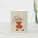 La tarjeta muestra el ilustracion original de un chica alegre que marchaba orgullosamente y sostenía una bandera que decía "ay". Excelente por enviar felicitaciones. En blanco por dentro.